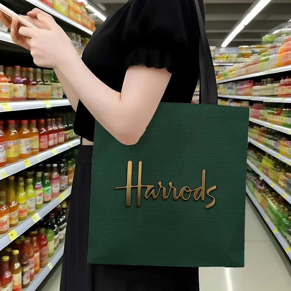1 Pc  Harrods Tote Bag, Foldable Shopping Bag, Reusable Shopper Bag Art Print Tote Bag Nanasbeautyholic