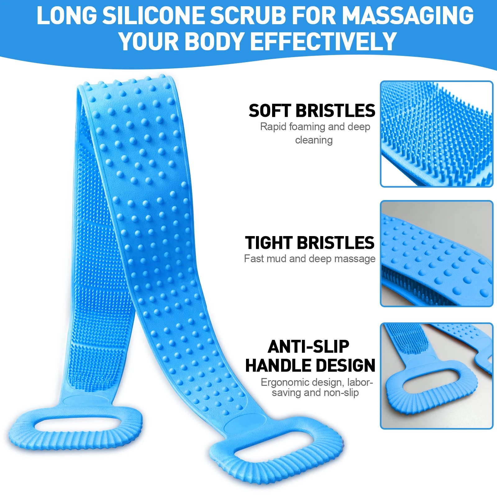 Gentle Exfoliating Back Scrubber Set with Extended Reach This premium silicone back scrubber set delivers spa-quality exfoliation and massage in one portable system. The 28-inch extended handle reaches difficult areas along your back and shoulders, while the soft food-grade silicone bristles provide effective dead skin removal without irritation. The included bath ball amplifies lather for enhanced cleansing, and the convenient hanging loop ensures quick-dry storage. Hypoallergenic and suitable for all skin types and ages, this durable tool outperforms traditional loofahs in longevity and hygiene. Perfect for home use or travel—compact, lightweight, and designed for everyday wellness. Available in orange and pink.