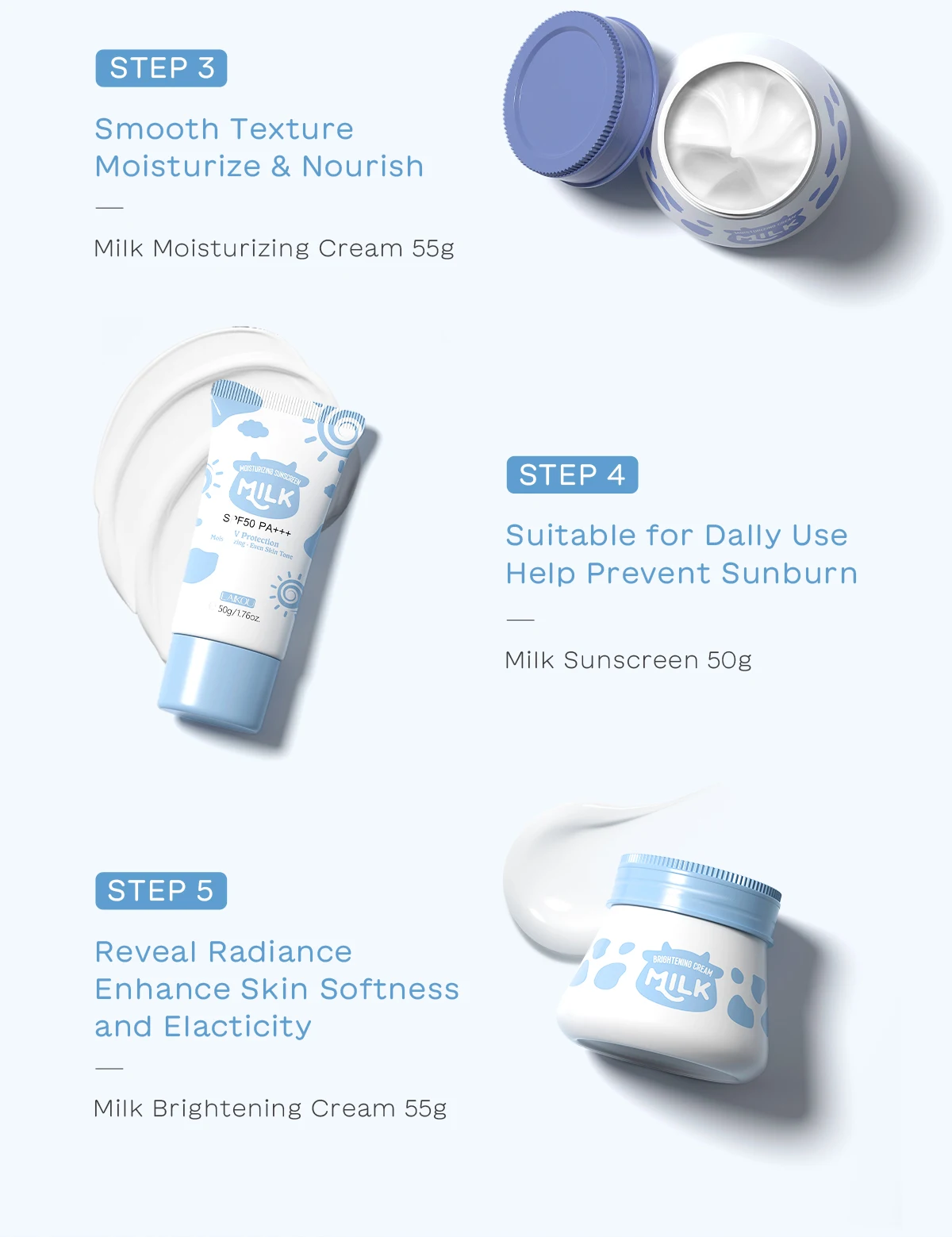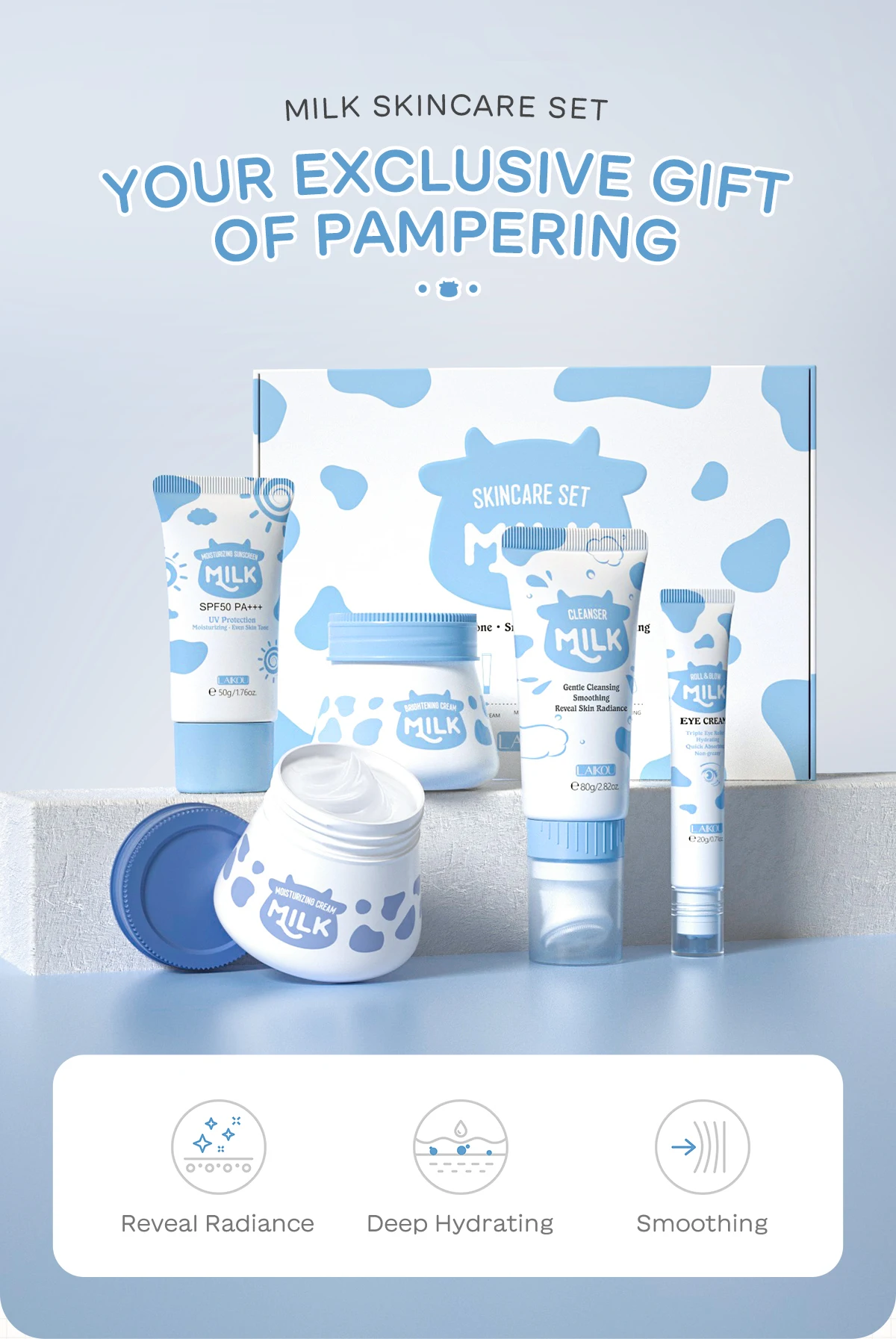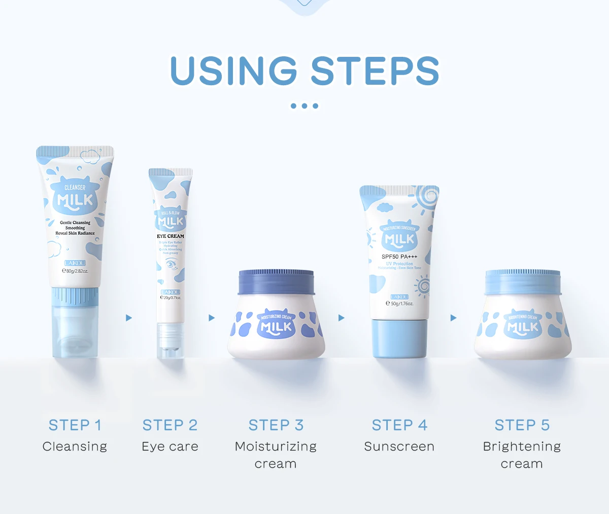 LAIKOU Milk Glowing Skincare Set delivers clinically-validated results through a thoughtfully curated 5-piece collection. Formulated with milk extract, peptide complex, niacinamide, and ceramide technology, this set addresses multiple skin concerns simultaneously. Users report 98% satisfaction with visible pore refinement, 95% achieve more balanced tone, and 98% experience smoother texture within four weeks. The comprehensive routine includes SPF50+ PA++++ sunscreen, radiant eye cream, skin-balance moisturizer, and gentle cleansing milk—each designed to work synergistically. Dermatologist-developed actives target photoaging, dark circles, and barrier reinforcement without parabens or synthetic fragrance. Ideal for those seeking professional-grade results in travel-friendly, luxury packaging.