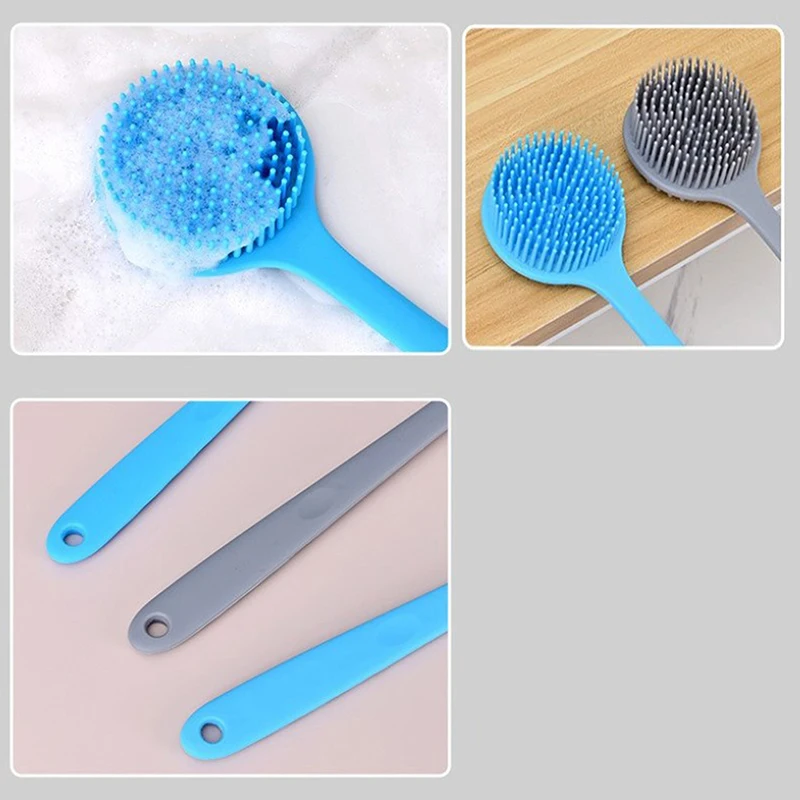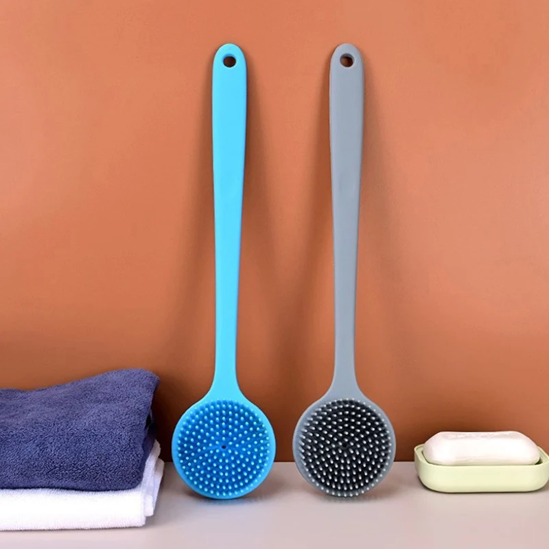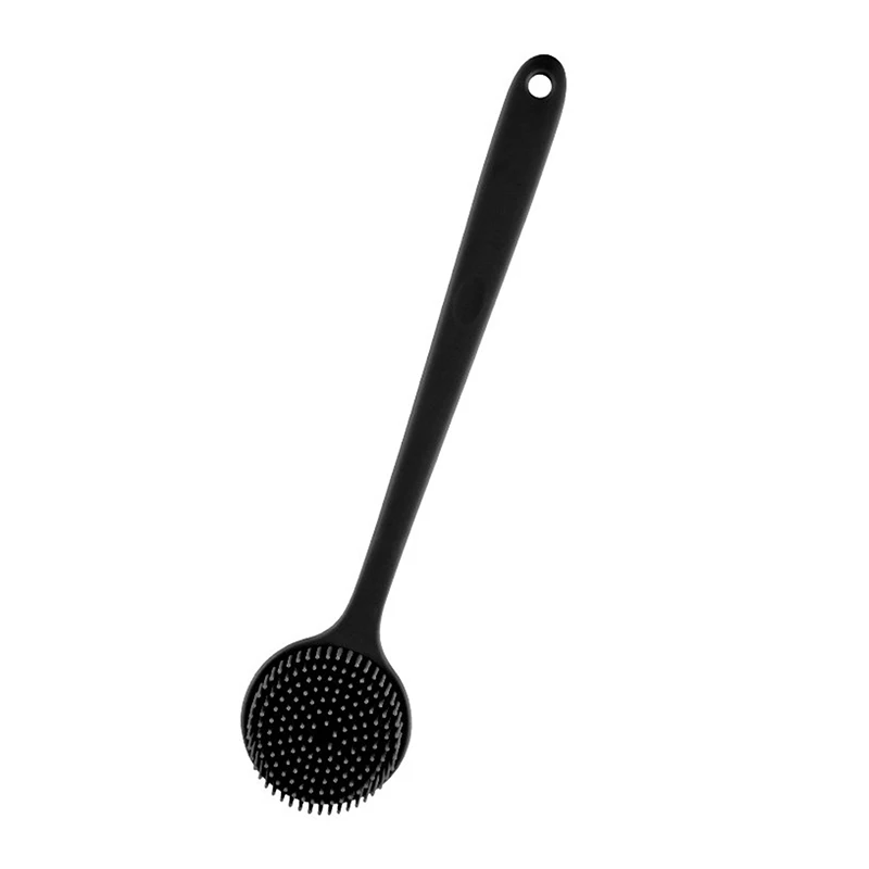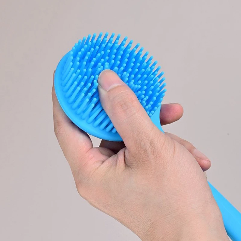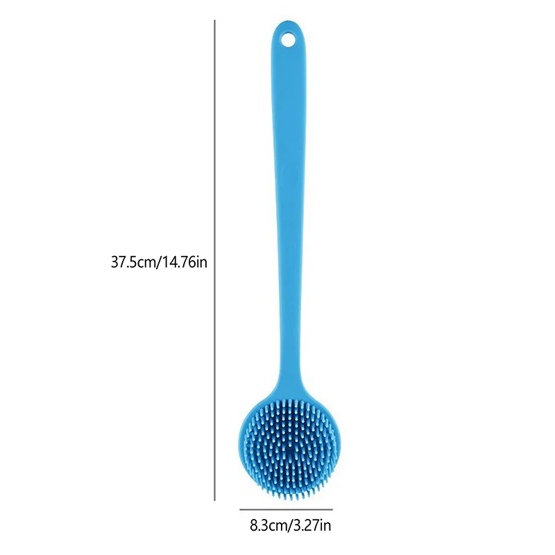 YOVIP Silicone Back Scrubber features a durable, food-grade silicone construction that's 100% BPA-free, non-toxic, and odor-free—a safer alternative to plastic or nylon brushes. The extended 15-inch ergonomic handle with a gentle bend reaches your back and feet effortlessly, while the lightweight design (just 5.15oz) prevents hand fatigue during extended use. Dual-sided bristles maximize cleaning and exfoliating coverage on hard-to-reach areas. The textured non-slip grip ensures secure handling even when wet and soapy, and the included adhesive hook keeps it conveniently stored. Silicone's naturally hygienic properties resist bacterial growth and dry quickly—simply rinse and hang. Available in four colors. Includes one back scrubber and one adhesive hook.